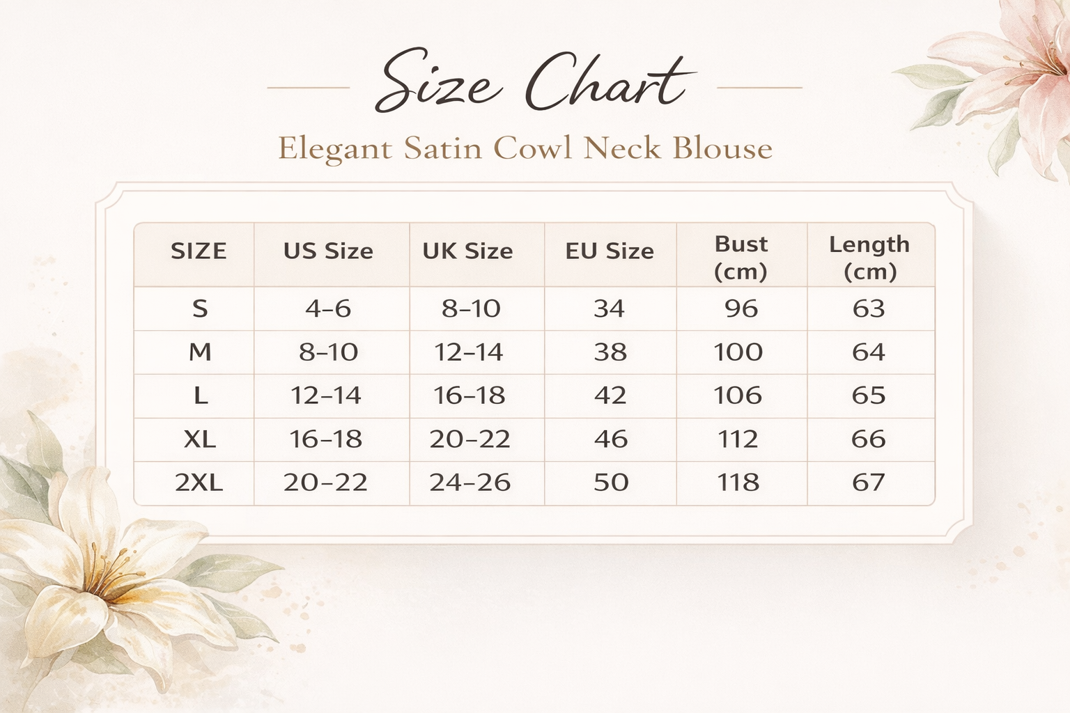 This satin cowl neck blouse drapes beautifully across the neckline, creating a soft, feminine silhouette. The silk-feel fabric glides smoothly over the body, offering a polished finish perfect for office wear, dinners, and special occasions.