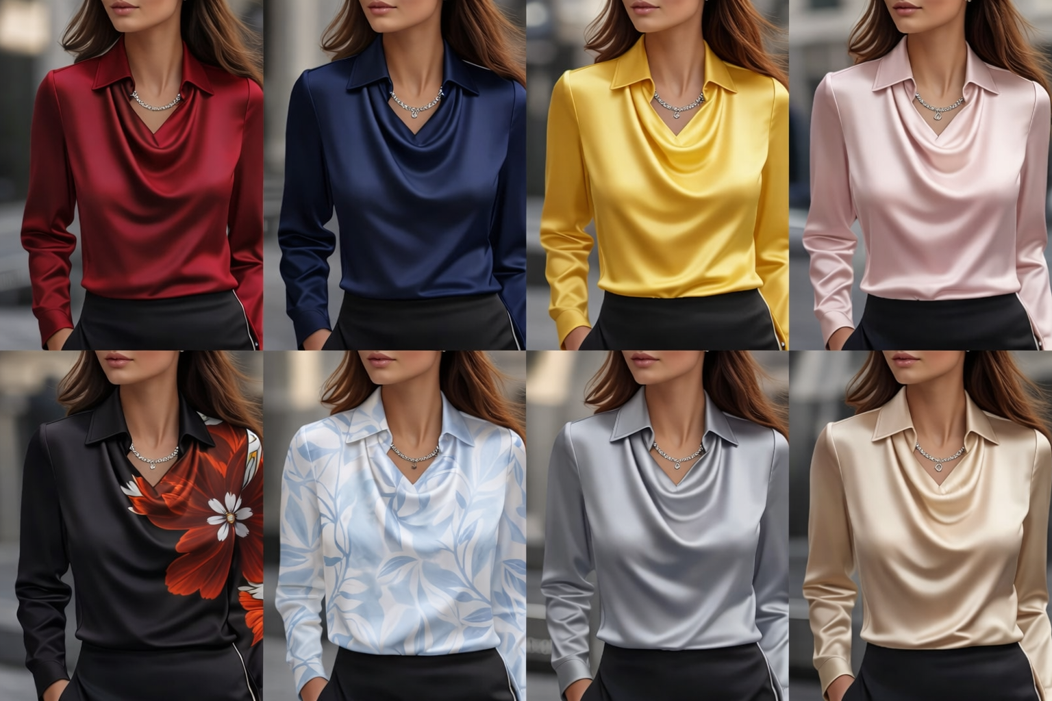 "Absolutely love the drape of this blouse. The satin finish looks elegant without being too shiny, and it fits beautifully for work and dinners. I’ve already ordered another color."